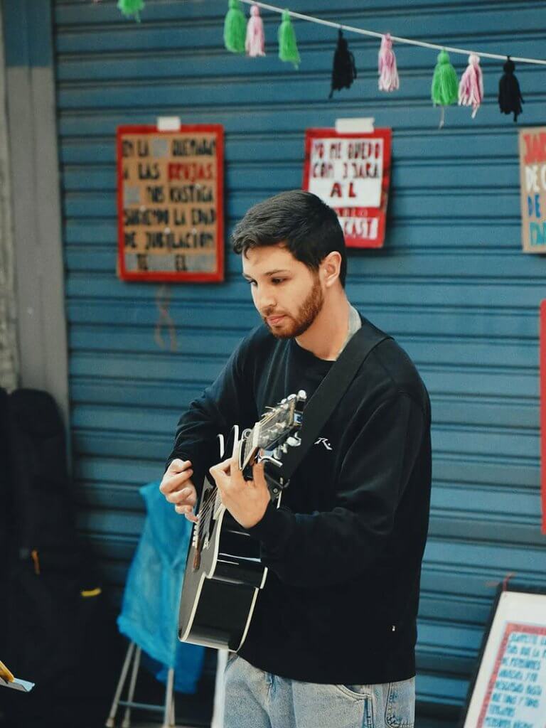 Comencé como músico autodidacta desde los 8 años tocando guitarra, hasta el momento que ingresé a estudiar en la Universidad Católica el año 2019 Composición musical Principalmente Con Miguel Farias y Aliocha Solovera. También estudié sonido con Chalo Gonzalez en 2022 y así me desempeño trabajando en el área de la producción paralelamente a la música popular