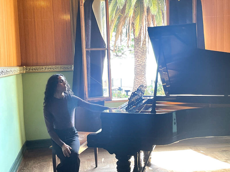 En mayo de 2025 presenté mi concierto didáctico «Mujeres chilenas folkloristas al piano», en el (MAC) museo de arte contemporáneo y museo de Santiago Casa Colorada.